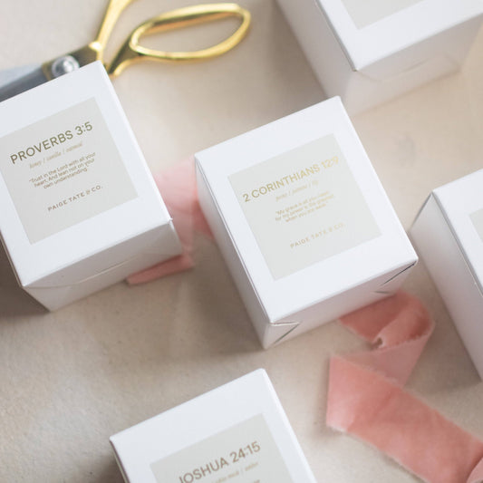Paige Tate & Co. - Scripture Candle: 2 Corinthians 12:9 Soy Wax Christian Gift