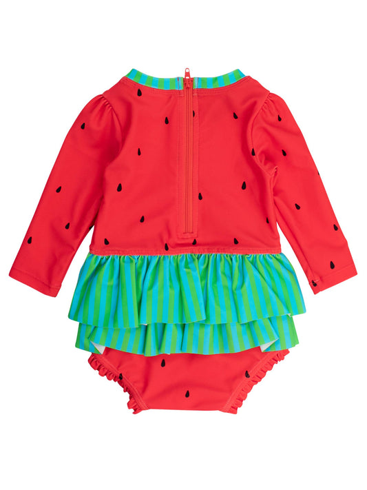 Baby Girls Periwinkle Blue Gingham LS OP RG Swimsuit w/Ruffles