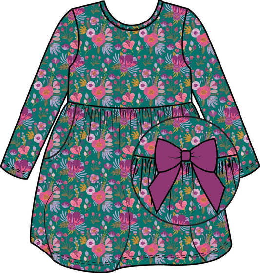 Emerald Floral Knit Long Sleeve Ruffle Bodysuit