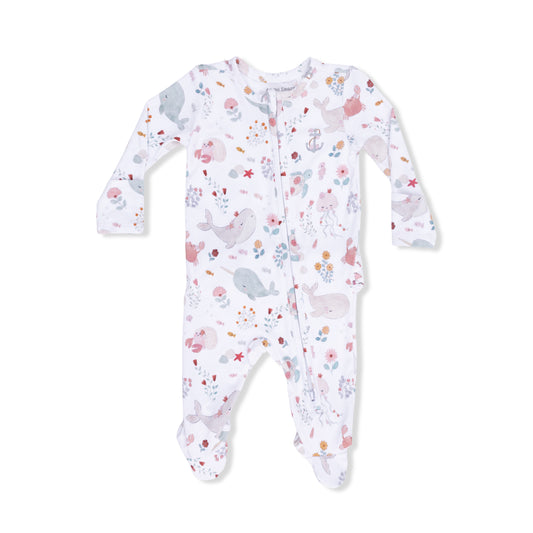 Garden Sea Creatures - 2Way Ruffle Back Zip Footie