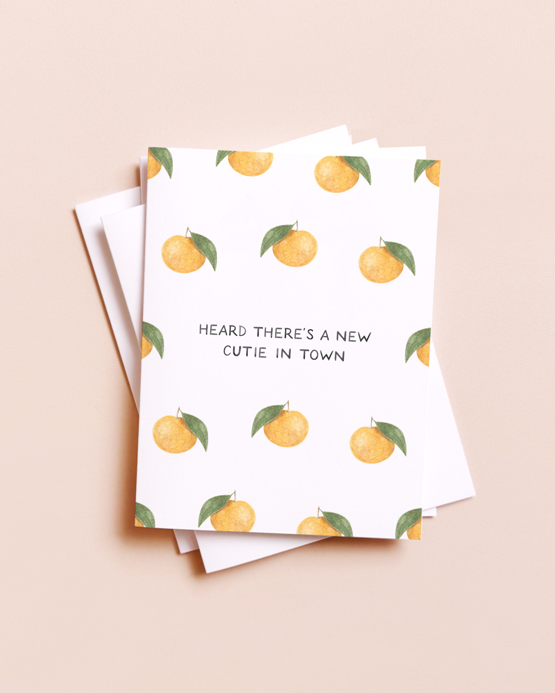 This gender neutral baby card features a vibrant clementine pattern, paired with a sweet food-inspired pun. Great for: new baby, new parents, baby showers, pregnancy, adoption