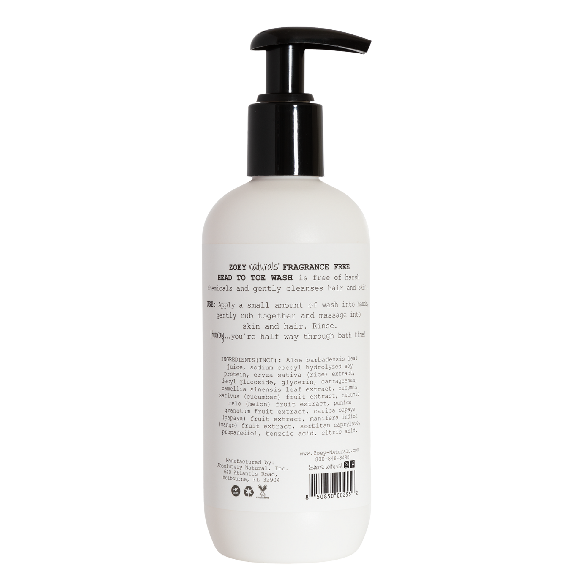 Zoey Naturals - Fragrance Free Head To Toe Wash - 9.65oz